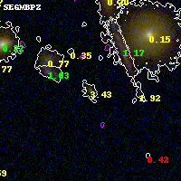 Object #2667 x,y = (3128, 2701) RA, Dec = (02:32:14.808, -44:20:30.12) = (38.06170, -44.34170) BPZ = 3.434 [0.299--3.507] type = 9.70 (SB3_B10 - SB2_B10) chisq2 = 0.62 ODDS = 0.94 z_cluster = 0.284