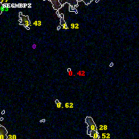 Object #2853 x,y = (3191, 2629) RA, Dec = (02:32:14.448, -44:20:34.44) = (38.06020, -44.34290) BPZ = 0.421 [0.082--3.384] type = 10.40 (SB3_B10 - SB11_A_0_l) chisq2 = 1.23 ODDS = 0.16 z_cluster = 0.284
