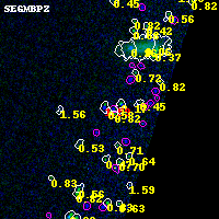 Object #3036 x,y = (4289, 2429) RA, Dec = (02:32:08.304, -44:20:46.32) = (38.03460, -44.34620) BPZ = 0.585 [0.413--3.787] type = 3.00 (Ell5_A_0) chisq2 = 0.00 ODDS = 0.18 z_cluster = 0.284