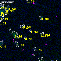 Object #3263 x,y = (1018, 2323) RA, Dec = (02:32:26.616, -44:20:52.80) = (38.11090, -44.34800) BPZ = 1.418 [0.163--3.180] type = 8.70 (SB2_B10 - SB1_B10) chisq2 = 0.00 ODDS = 0.09 z_cluster = 0.284