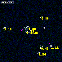 Object #3415 x,y = (4064, 2243) RA, Dec = (02:32:09.576, -44:20:57.48) = (38.03990, -44.34930) BPZ = 1.249 [0.692--2.762] type = 10.50 (SB11_A_0_l - SB3_B10) chisq2 = 0.00 ODDS = 0.10 z_cluster = 0.284
