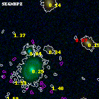 Object #3484 x,y = (1493, 2284) RA, Dec = (02:32:23.952, -44:20:54.96) = (38.09980, -44.34860) BPZ = 0.337 [0.158--3.123] type = 8.50 (SB2_B10 - SB1_B10) chisq2 = 0.06 ODDS = 0.25 z_cluster = 0.284