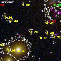Object #3487 x,y = (2259, 2231) RA, Dec = (02:32:19.680, -44:20:58.20) = (38.08200, -44.34950) BPZ = 3.778 [3.539--5.067] type = 9.60 (SB3_B10 - SB2_B10) chisq2 = 0.13 ODDS = 0.47 z_cluster = 0.284