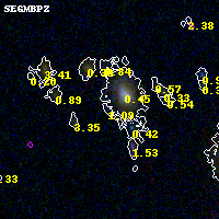 Object #3509 x,y = (3418, 2542) RA, Dec = (02:32:13.176, -44:20:39.48) = (38.05490, -44.34430) BPZ = 1.089 [0.468--3.063] type = 10.20 (SB3_B10 - SB11_A_0_l) chisq2 = 0.08 ODDS = 0.19 z_cluster = 0.284