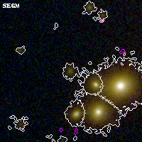 Object #3572 x,y = (2148, 2189) RA, Dec = (02:32:20.280, -44:21:00.72) = (38.08450, -44.35020) BPZ = 0.329 [0.206--0.777] type = 8.40 (SB1_B10 - SB2_B10) chisq2 = 0.07 ODDS = 0.30 z_cluster = 0.284