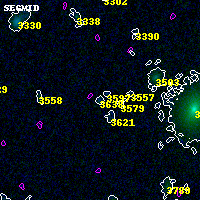 Object #3638 x,y = (997, 2196) RA, Dec = (02:32:26.736, -44:21:00.36) = (38.11140, -44.35010) BPZ = 1.409 [0.144--3.112] type = 9.00 (SB2_B10) chisq2 = 0.00 ODDS = 0.09 z_cluster = 0.284
