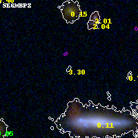 Object #3937 x,y = (3615, 2036) RA, Dec = (02:32:12.072, -44:21:10.08) = (38.05030, -44.35280) BPZ = 3.301 [0.114--3.444] type = 11.00 (SB11_A_0_l) chisq2 = 0.18 ODDS = 0.28 z_cluster = 0.284