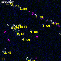 Object #4049 x,y = (1543, 1981) RA, Dec = (02:32:23.664, -44:21:13.32) = (38.09860, -44.35370) BPZ = 1.060 [0.186--4.166] type = 8.20 (SB1_B10 - SB2_B10) chisq2 = 0.00 ODDS = 0.06 z_cluster = 0.284