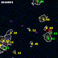 Object #4293 x,y = (3483, 1848) RA, Dec = (02:32:12.816, -44:21:21.24) = (38.05340, -44.35590) BPZ = 0.119 [0.056--2.988] type = 10.60 (SB11_A_0_l - SB3_B10) chisq2 = 0.77 ODDS = 0.38 z_cluster = 0.284