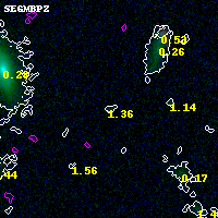 Object #4497 x,y = (1649, 1727) RA, Dec = (02:32:23.088, -44:21:28.44) = (38.09620, -44.35790) BPZ = 1.356 [0.157--3.237] type = 8.00 (SB1_B10) chisq2 = 0.00 ODDS = 0.08 z_cluster = 0.284
