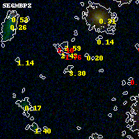 Object #4511 x,y = (1781, 1718) RA, Dec = (02:32:22.344, -44:21:29.16) = (38.09310, -44.35810) BPZ = 3.302 [0.108--3.459] type = 10.50 (SB11_A_0_l - SB3_B10) chisq2 = 0.11 ODDS = 0.35 z_cluster = 0.284