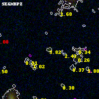 Object #4630 x,y = (2383, 1642) RA, Dec = (02:32:18.984, -44:21:33.48) = (38.07910, -44.35930) BPZ = 3.818 [3.659--4.493] type = 10.80 (SB11_A_0_l - SB3_B10) chisq2 = 0.48 ODDS = 0.90 z_cluster = 0.284