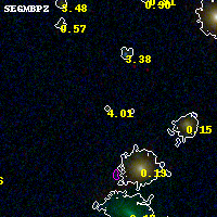 Object #4776 x,y = (3478, 1581) RA, Dec = (02:32:12.840, -44:21:37.08) = (38.05350, -44.36030) BPZ = 4.015 [3.423--5.132] type = 10.90 (SB11_A_0_l - SB3_B10) chisq2 = 0.17 ODDS = 0.32 z_cluster = 0.284