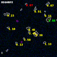 Object #4797 x,y = (2698, 1566) RA, Dec = (02:32:17.208, -44:21:38.16) = (38.07170, -44.36060) BPZ = 0.445 [0.200--3.488] type = 9.20 (SB2_B10 - SB3_B10) chisq2 = 0.26 ODDS = 0.21 z_cluster = 0.284