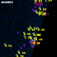 Object #4813 x,y = (4000, 1559) RA, Dec = (02:32:09.936, -44:21:38.52) = (38.04140, -44.36070) BPZ = 0.825 [0.540--5.193] type = 2.00 (Ell6_A_0) chisq2 = 0.00 ODDS = 0.15 z_cluster = 0.284