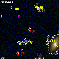 Object #4898 x,y = (2470, 1495) RA, Dec = (02:32:18.480, -44:21:42.48) = (38.07700, -44.36180) BPZ = 0.051 [0.036--2.709] type = 10.60 (SB11_A_0_l - SB3_B10) chisq2 = 1.74 ODDS = 0.09 z_cluster = 0.284