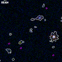 Object #5021 x,y = (2429, 1414) RA, Dec = (02:32:18.720, -44:21:47.16) = (38.07800, -44.36310) BPZ = 1.997 [1.544--2.379] type = 11.00 (SB11_A_0_l) chisq2 = 2.53 ODDS = 0.32 z_cluster = 0.284