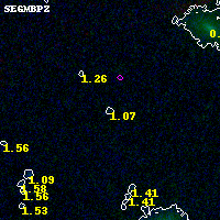 Object #5029 x,y = (3408, 1409) RA, Dec = (02:32:13.248, -44:21:47.52) = (38.05520, -44.36320) BPZ = 1.070 [0.172--3.499] type = 8.40 (SB1_B10 - SB2_B10) chisq2 = 0.00 ODDS = 0.07 z_cluster = 0.284