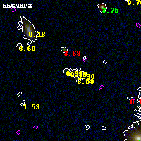 Object #5248 x,y = (1992, 1261) RA, Dec = (02:32:21.168, -44:21:56.52) = (38.08820, -44.36570) BPZ = 0.850 [0.533--3.095] type = 10.50 (SB11_A_0_l - SB3_B10) chisq2 = 0.41 ODDS = 0.09 z_cluster = 0.284