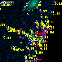 Object #5333 x,y = (3869, 1211) RA, Dec = (02:32:10.656, -44:21:59.40) = (38.04440, -44.36650) BPZ = 0.449 [0.262--3.687] type = 3.00 (Ell5_A_0) chisq2 = 0.00 ODDS = 0.20 z_cluster = 0.284
