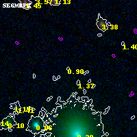 Object #5348 x,y = (2872, 1208) RA, Dec = (02:32:16.248, -44:21:59.76) = (38.06770, -44.36660) BPZ = 0.902 [0.199--5.614] type = 8.10 (SB1_B10 - SB2_B10) chisq2 = 0.00 ODDS = 0.06 z_cluster = 0.284