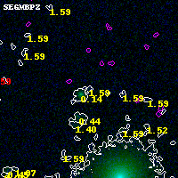 Object #5387 x,y = (1647, 1167) RA, Dec = (02:32:23.088, -44:22:02.28) = (38.09620, -44.36730) BPZ = 1.587 [0.744--2.740] type = 10.30 (SB3_B10 - SB11_A_0_l) chisq2 = 0.00 ODDS = 0.13 z_cluster = 0.284