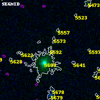 Object #5592 x,y = (2712, 989) RA, Dec = (02:32:17.136, -44:22:12.72) = (38.07140, -44.37020) BPZ = 1.366 [0.159--3.233] type = 8.10 (SB1_B10 - SB2_B10) chisq2 = 0.00 ODDS = 0.08 z_cluster = 0.284