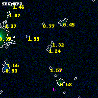 Object #5645 x,y = (2802, 938) RA, Dec = (02:32:16.632, -44:22:15.96) = (38.06930, -44.37110) BPZ = 1.235 [0.161--3.269] type = 8.00 (SB1_B10) chisq2 = 0.00 ODDS = 0.07 z_cluster = 0.284