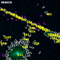 Object #579 x,y = (2570, 3952) RA, Dec = (02:32:17.928, -44:19:14.88) = (38.07470, -44.32080) BPZ = 0.826 [0.353--6.480] type = 2.00 (Ell6_A_0) chisq2 = 0.00 ODDS = 0.09 z_cluster = 0.284
