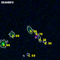 Object #5845 x,y = (3451, 709) RA, Dec = (02:32:13.008, -44:22:29.64) = (38.05420, -44.37490) BPZ = 0.059 [0.053--3.254] type = 4.10 (Ell4_A_0 - ES0_B10) chisq2 = 0.00 ODDS = 0.06 z_cluster = 0.284