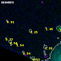Object #6071 x,y = (3404, 342) RA, Dec = (02:32:13.272, -44:22:51.60) = (38.05530, -44.38100) BPZ = 1.245 [0.159--3.261] type = 7.90 (SB1_B10 - Scd_B10) chisq2 = 0.00 ODDS = 0.07 z_cluster = 0.284