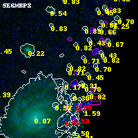 Object #6079 x,y = (3559, 321) RA, Dec = (02:32:12.384, -44:22:52.68) = (38.05160, -44.38130) BPZ = 0.706 [0.452--4.880] type = 2.00 (Ell6_A_0) chisq2 = 0.00 ODDS = 0.14 z_cluster = 0.284