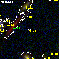 Object #332 x,y = (2010, 2734) RA, Dec = (02:32:21.072, -44:20:27.96) = (38.08780, -44.34110) BPZ = 3.710 [0.310--5.188] type = 10.10 (SB3_B10 - SB11_A_0_l) chisq2 = 0.45 ODDS = 0.36 z_cluster = 0.284