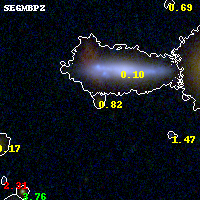 Object #617 x,y = (3633, 1929) RA, Dec = (02:32:11.976, -44:21:16.56) = (38.04990, -44.35460) BPZ = 0.818 [0.055--1.036] type = 7.80 (SB1_B10 - Scd_B10) chisq2 = 0.08 ODDS = 0.20 z_cluster = 0.284