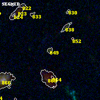 Object #849 x,y = (3179, 1452) RA, Dec = (02:32:14.520, -44:21:45.00) = (38.06050, -44.36250) BPZ = 3.771 [3.561--4.880] type = 8.90 (SB2_B10 - SB1_B10) chisq2 = 0.76 ODDS = 0.55 z_cluster = 0.284