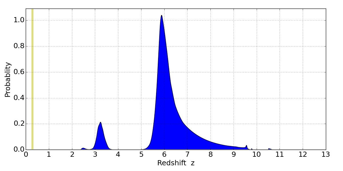 Best viewed in a wide browser window (1200 pixels or more). Download SED & P(z) plots to view larger versions.