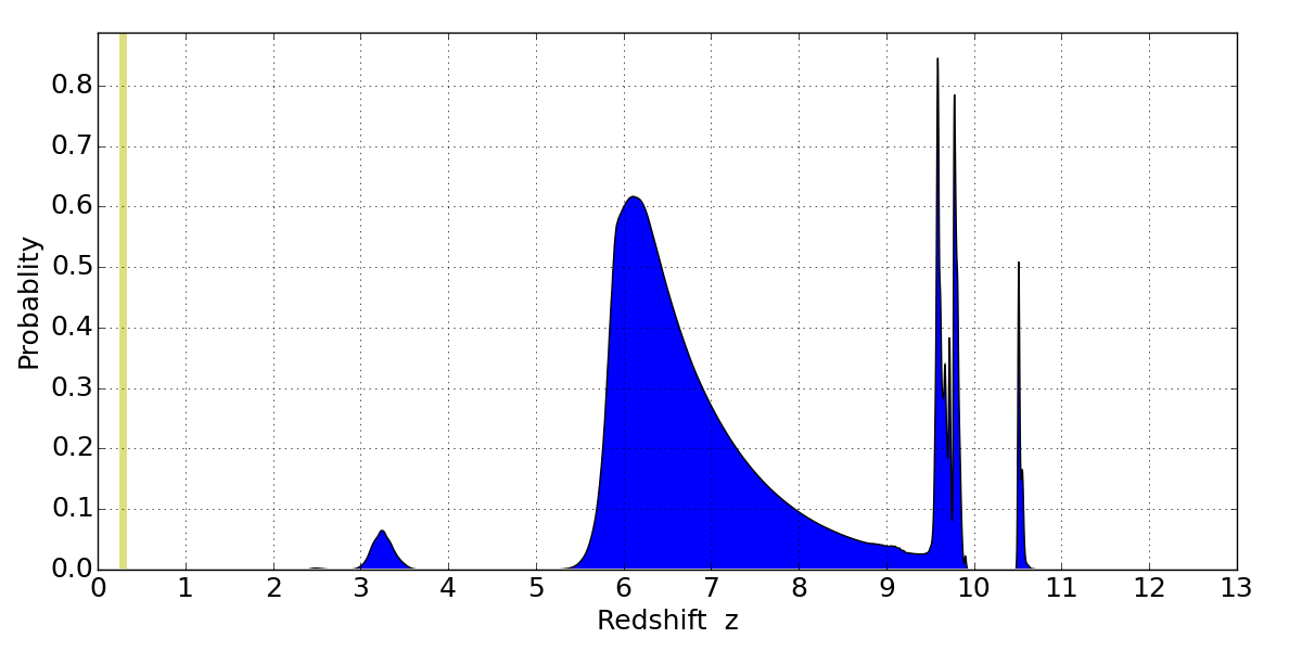 Best viewed in a wide browser window (1200 pixels or more). Download SED & P(z) plots to view larger versions.