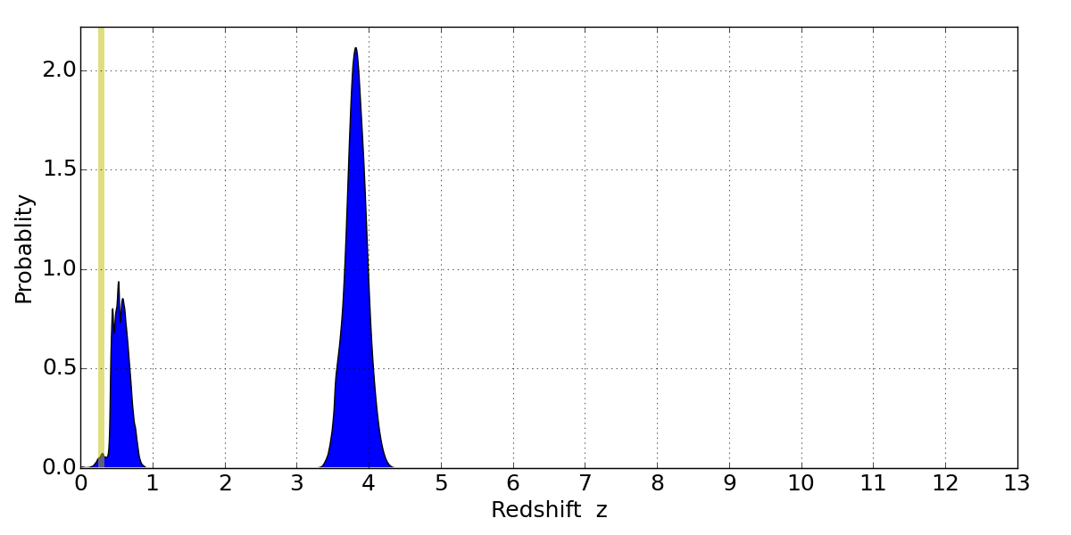 Best viewed in a wide browser window (1200 pixels or more). Download SED & P(z) plots to view larger versions.