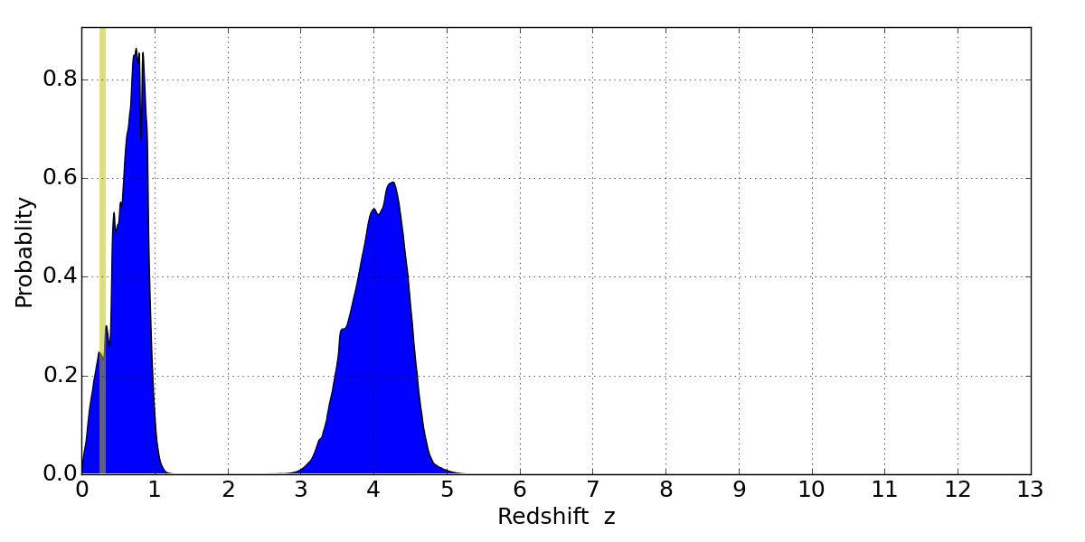 Best viewed in a wide browser window (1200 pixels or more). Download SED & P(z) plots to view larger versions.
