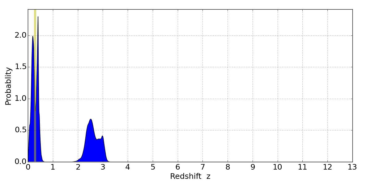Best viewed in a wide browser window (1200 pixels or more). Download SED & P(z) plots to view larger versions.