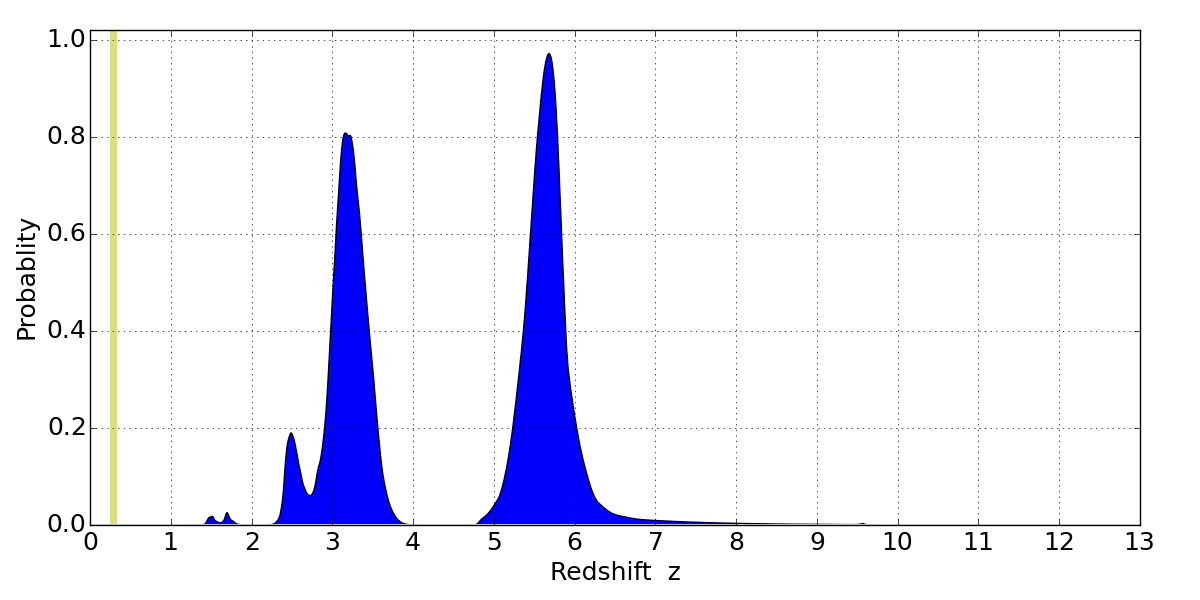 Best viewed in a wide browser window (1200 pixels or more). Download SED & P(z) plots to view larger versions.