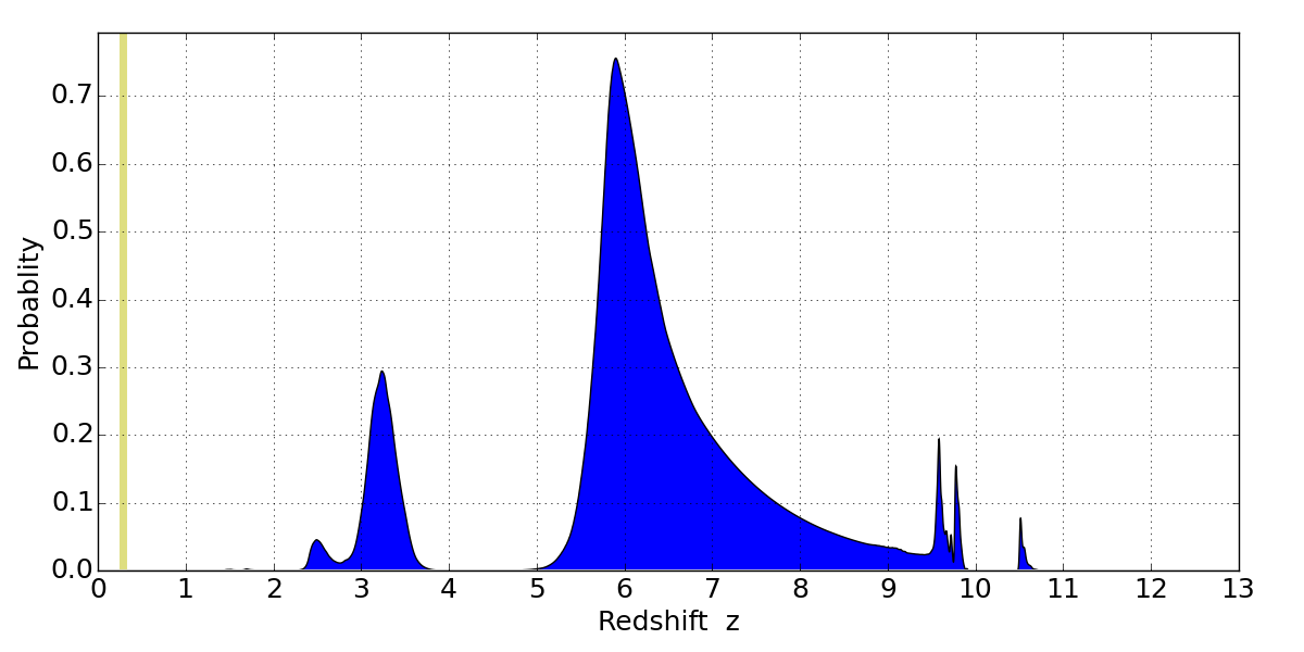 Best viewed in a wide browser window (1200 pixels or more). Download SED & P(z) plots to view larger versions.