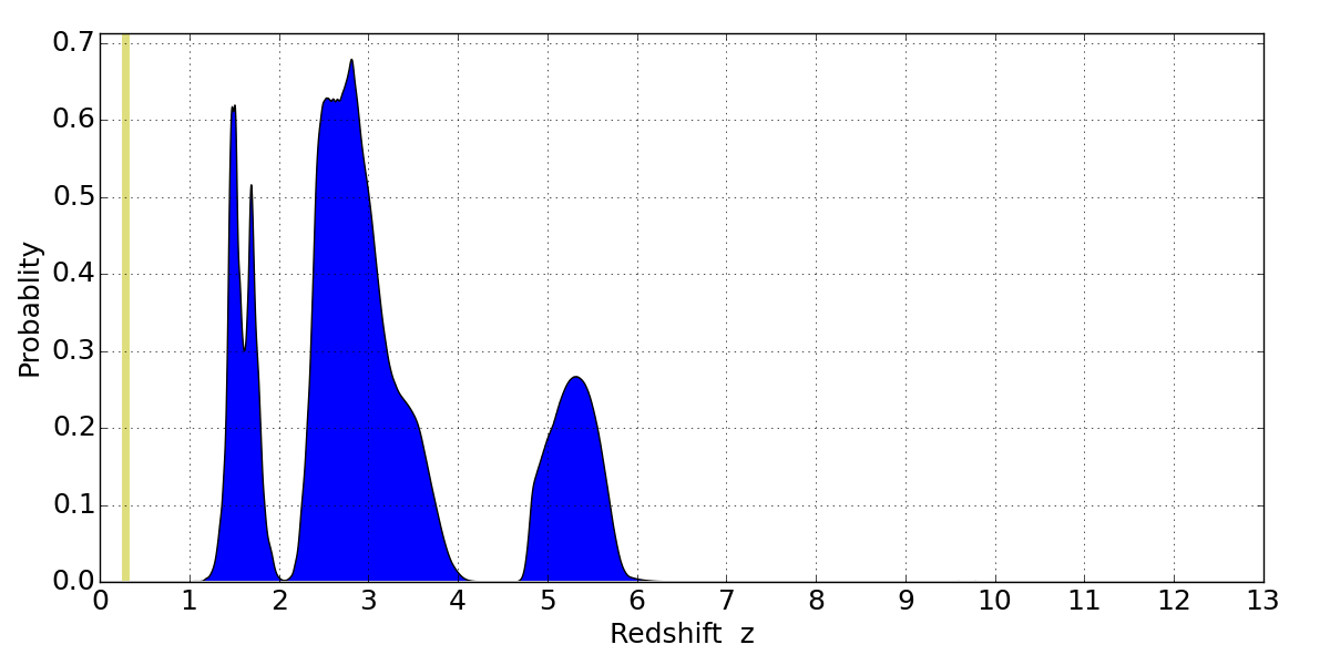 Best viewed in a wide browser window (1200 pixels or more). Download SED & P(z) plots to view larger versions.