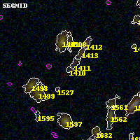 Black segments are analyzed here. Roll mouse over color images to view segments. Best viewed in a wide browser window (1200 pixels or more). Download SED & P(z) plots to view larger versions.