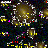 Black segments are analyzed here. Roll mouse over color images to view segments. Best viewed in a wide browser window (1200 pixels or more). Download SED & P(z) plots to view larger versions.