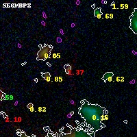 Black segments are analyzed here. Roll mouse over color images to view segments. Best viewed in a wide browser window (1200 pixels or more). Download SED & P(z) plots to view larger versions.