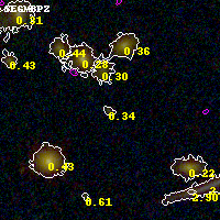 Black segments are analyzed here. Roll mouse over color images to view segments. Best viewed in a wide browser window (1200 pixels or more). Download SED & P(z) plots to view larger versions.