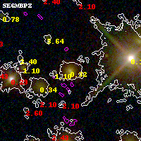 Black segments are analyzed here. Roll mouse over color images to view segments. Best viewed in a wide browser window (1200 pixels or more). Download SED & P(z) plots to view larger versions.