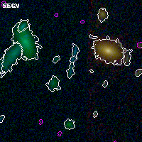 Black segments are analyzed here. Roll mouse over color images to view segments. Best viewed in a wide browser window (1200 pixels or more). Download SED & P(z) plots to view larger versions.