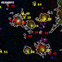 Black segments are analyzed here. Roll mouse over color images to view segments. Best viewed in a wide browser window (1200 pixels or more). Download SED & P(z) plots to view larger versions.